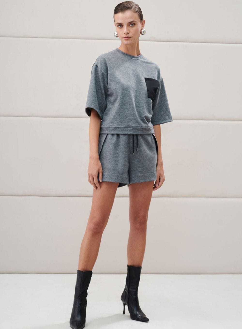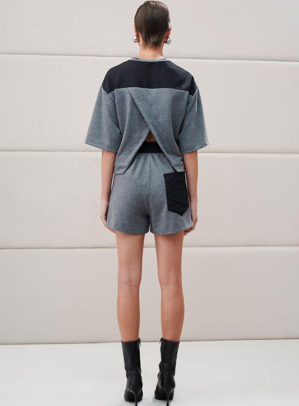 Conjunto Tshirt E Short Moleton Nylon Cinza/Preto