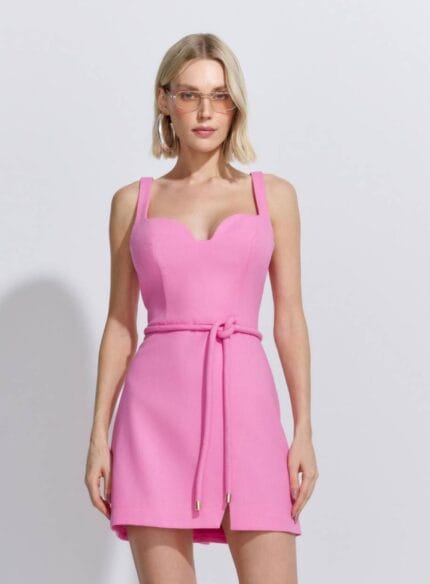 Vestido Curto Detalhe Cinto Linen Casual Rosa
