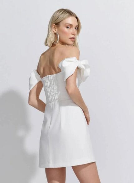 Vestido Curto Ombro A Ombro Lacos Alfaitaria Twill Off White