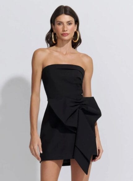 Vestido Curto Maxi Laco Alfaiataria Visco Preto