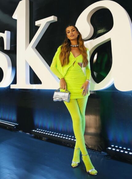 Vestido Tule Mini Manga Drape Verde Claro