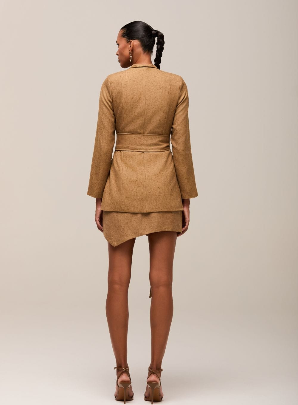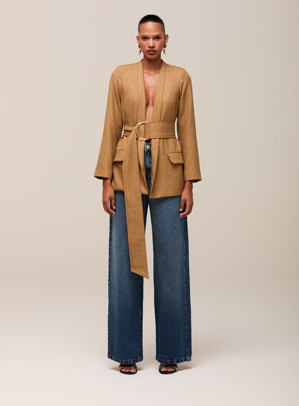 Blazer Alfaiataria Mel Sem Gola com Cinto e Maxi Fivela