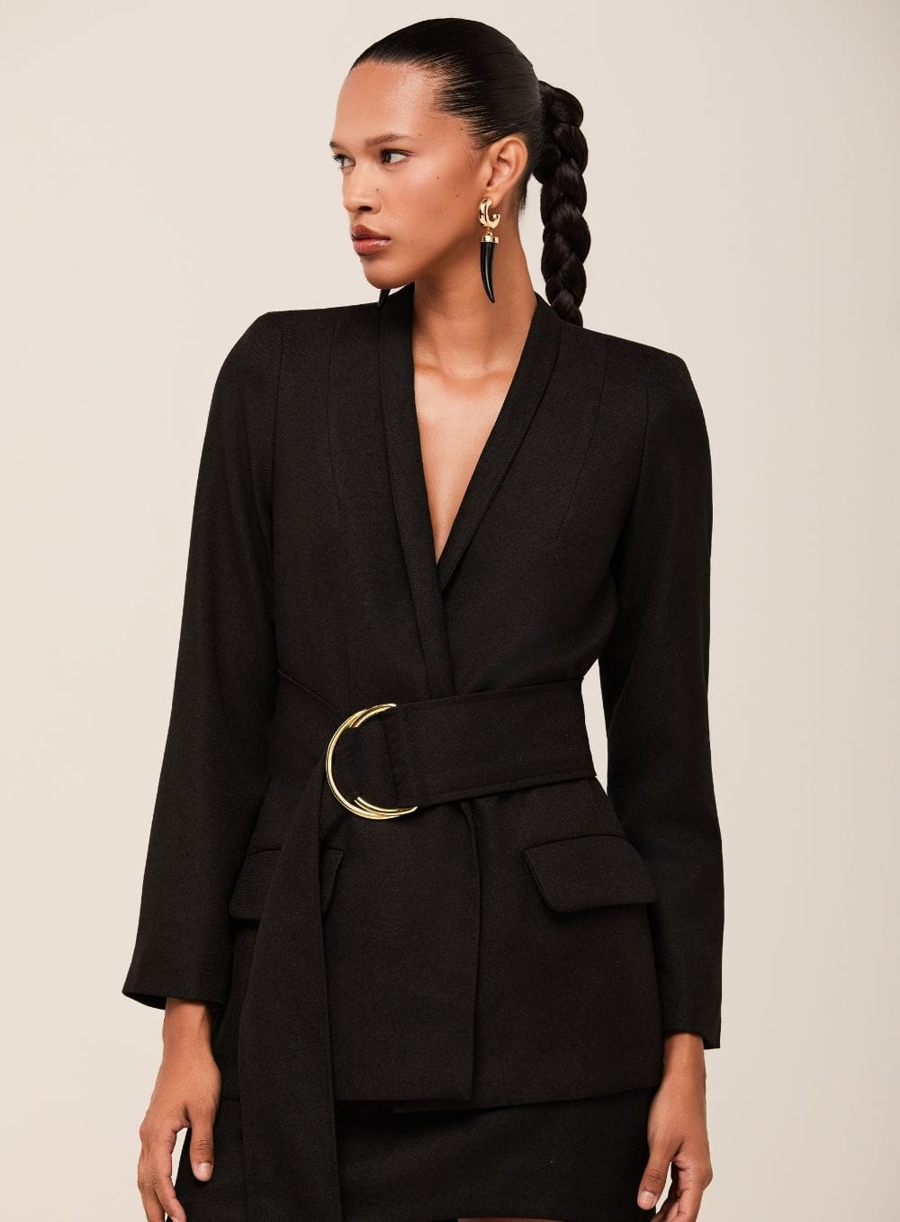 Blazer Alfaiataria Mel Sem Gola com Cinto e Maxi Fivela