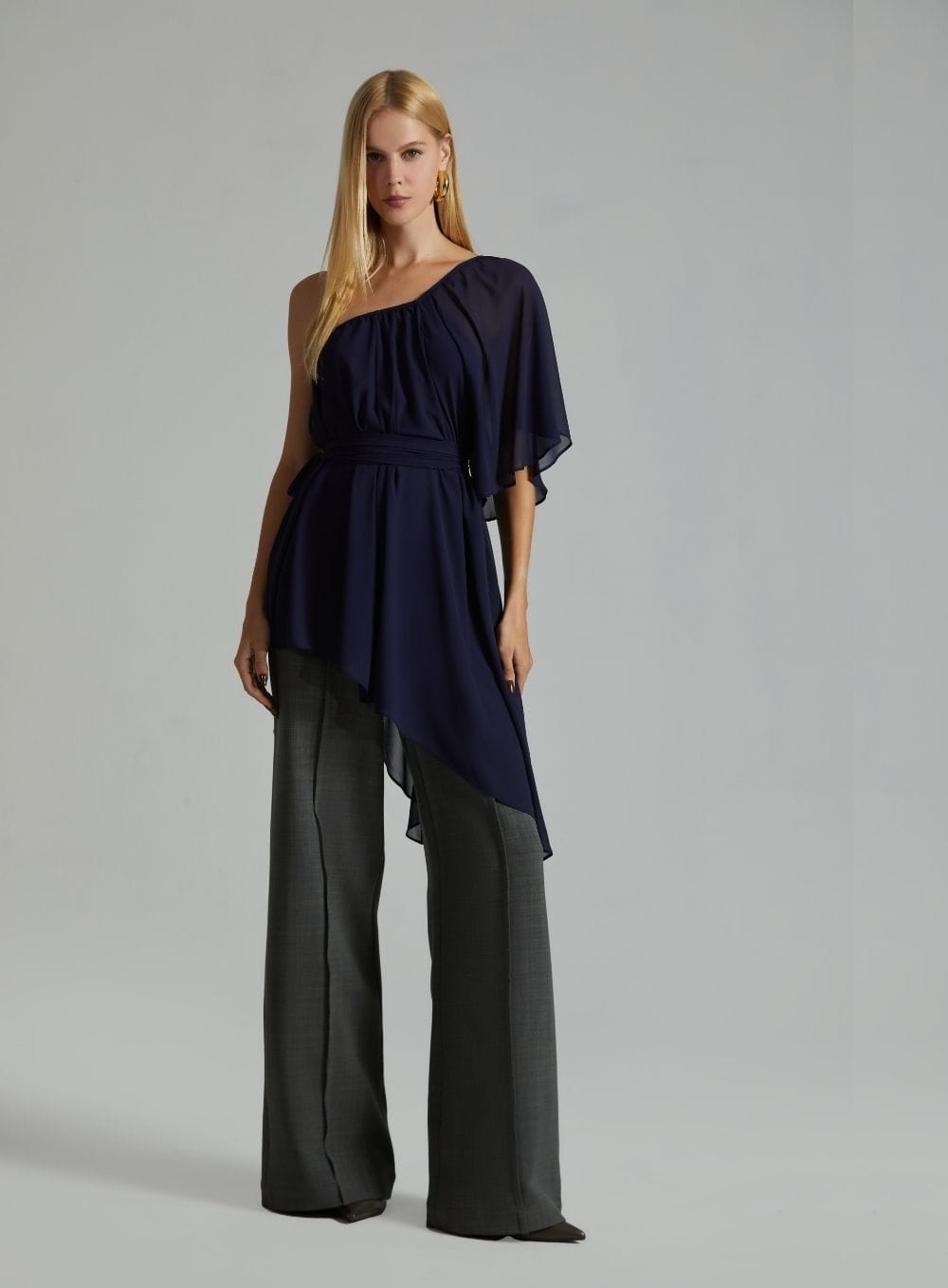 Peças autorais com fluidez e cortes assimétricos, refletindo elegância duradoura e inovação nos detalhes.