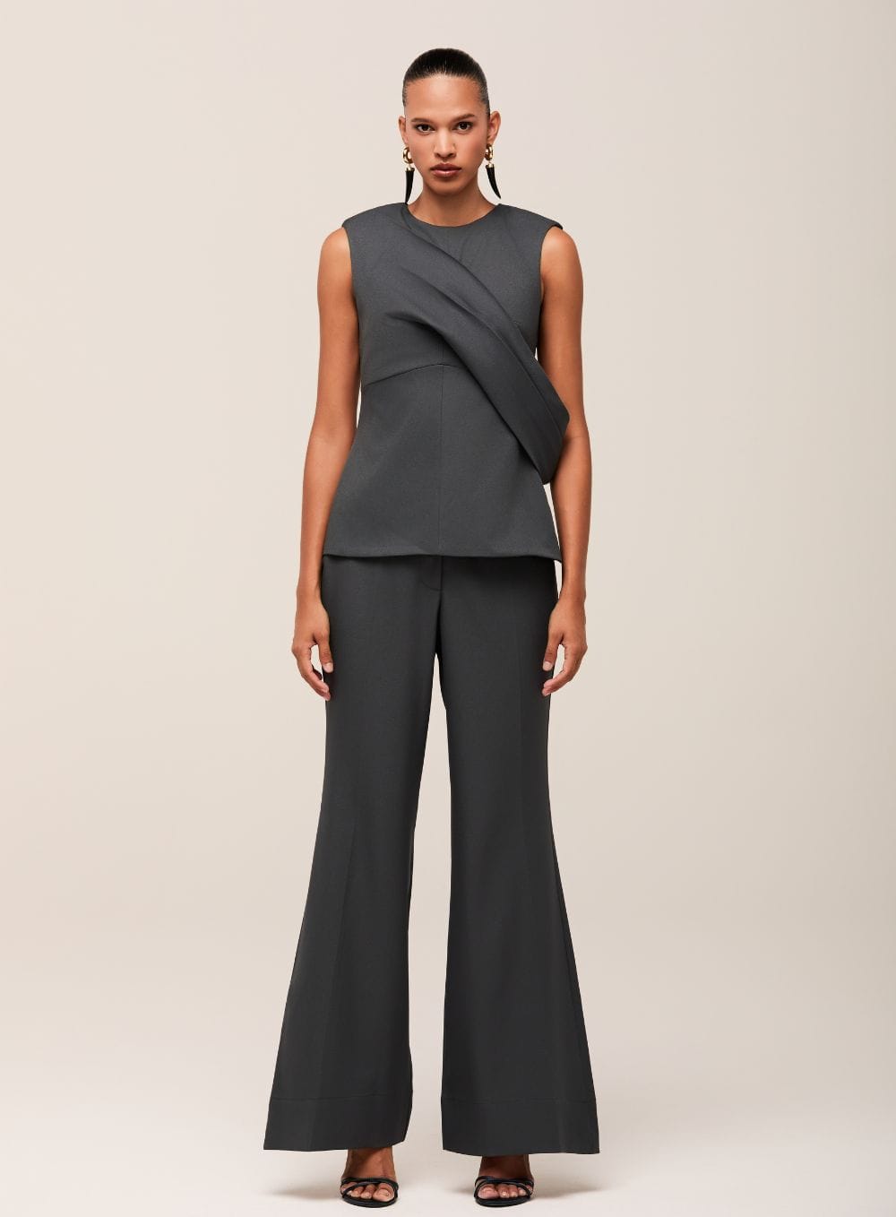 Peças autorais com fluidez e cortes assimétricos, refletindo elegância duradoura e inovação nos detalhes.