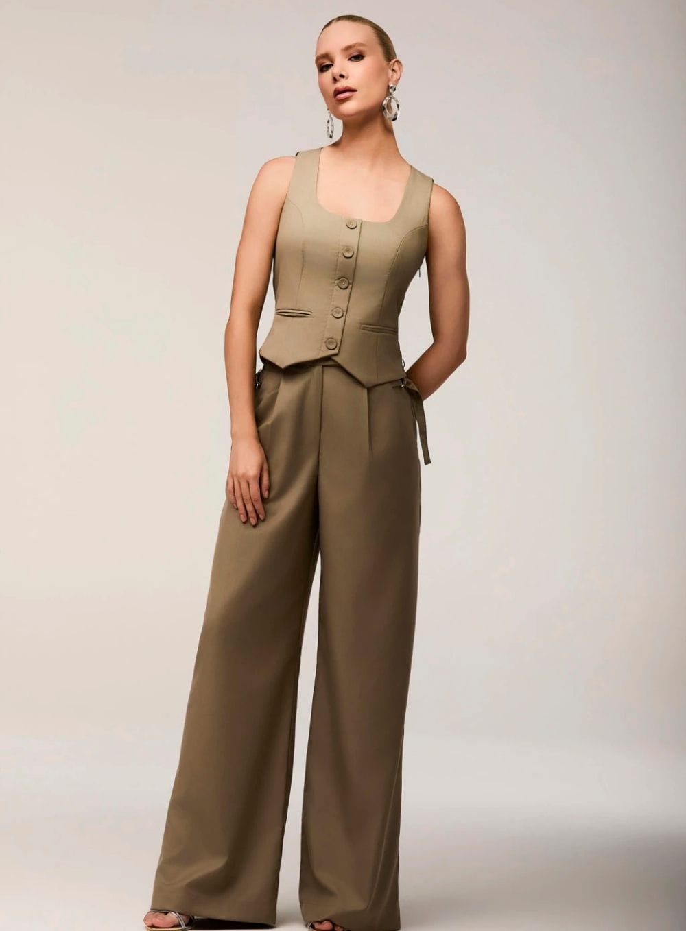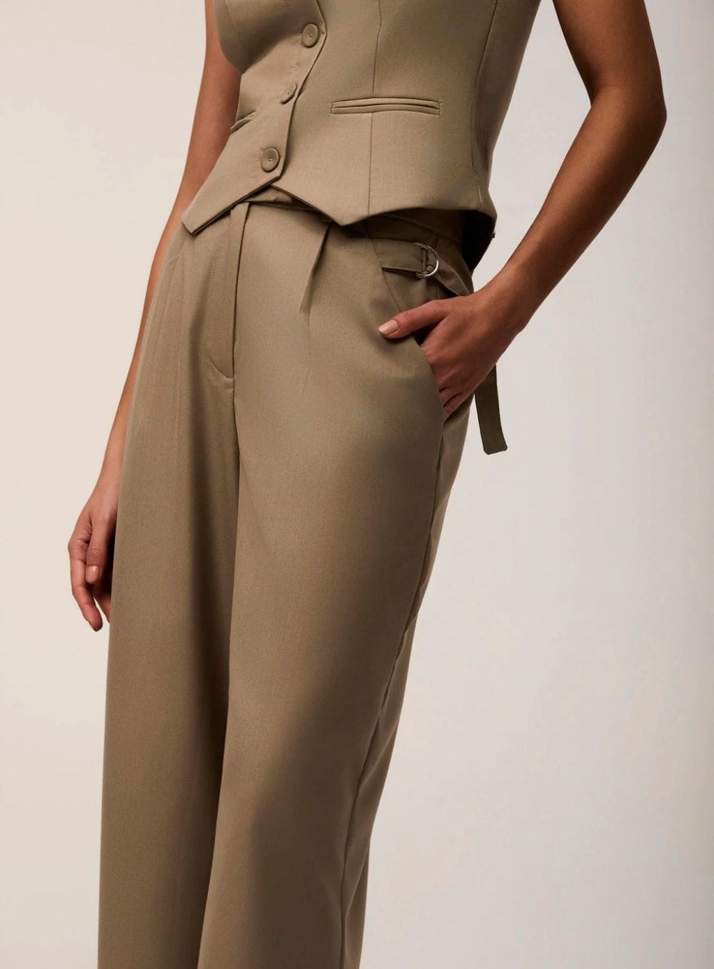 A Calça Dani é a união perfeita entre a estrutura da alfaiataria clássica e o movimento da pantalona moderna. Confeccionada em sarja 2×2, ela oferece a firmeza ideal com um toque de fluidez. O design é elevado por detalhes estratégicos: pregas rasas que definem o vinco frontal sem adicionar volume, e o bolso faca com detalhe em meia argola, que traz uma referência utilitária sofisticada. Uma peça de cintura alta projetada para alongar a silhueta com elegância e frescor.