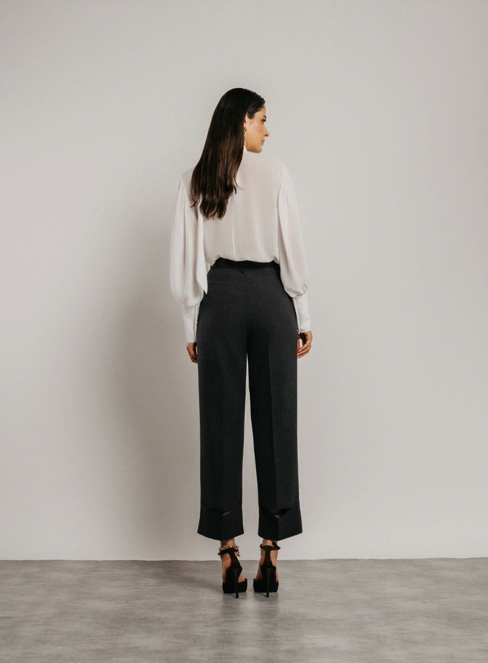 A Calça Deny une a perfeição do corte tradicional à ousadia do design moderno. Sua modelagem de alfaiataria premium oferece um caimento impecável que alonga a silhueta, enquanto os recortes estratégicos na barra trazem um movimento atual e sofisticado à peça. É o equilíbrio exato entre a seriedade do escritório e o estilo do street style luxuoso.