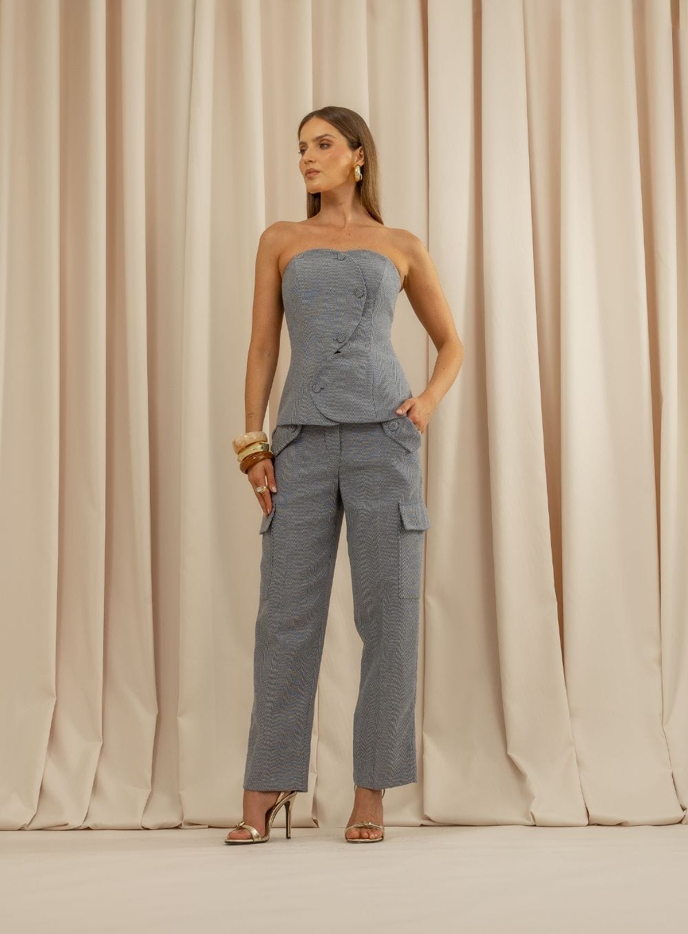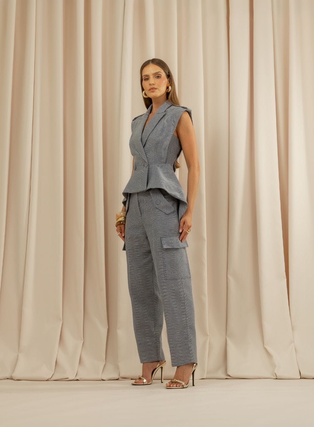 DICAS DE USO Combine a Calça Elise com o Blazer Sem Mangas da mesma família para um conjunto de impacto, ou com o Corset Elise para um look sofisticado e feminino. Aposte em elegantes ou scarpins para um toque de refinamento.
