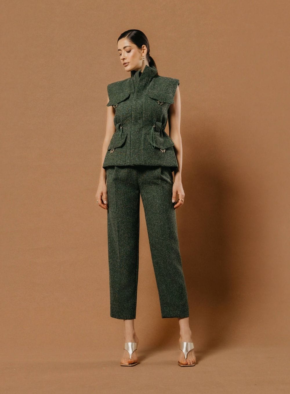 O Conjunto Perfeito: Use com o Colete Helena para um visual monocromático e texturizado que é puro sinônimo de sofisticação.