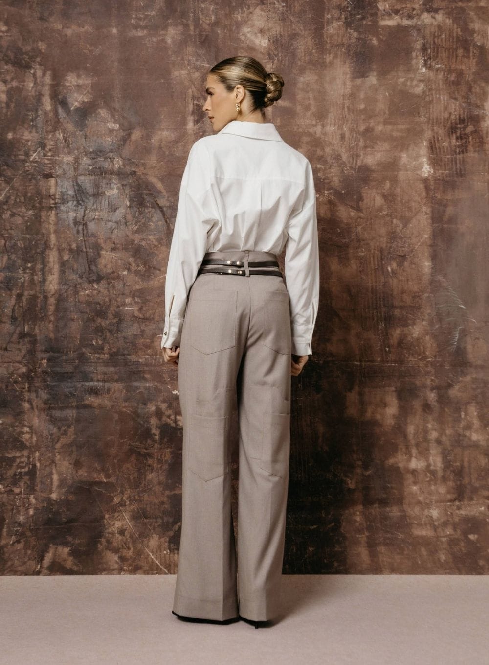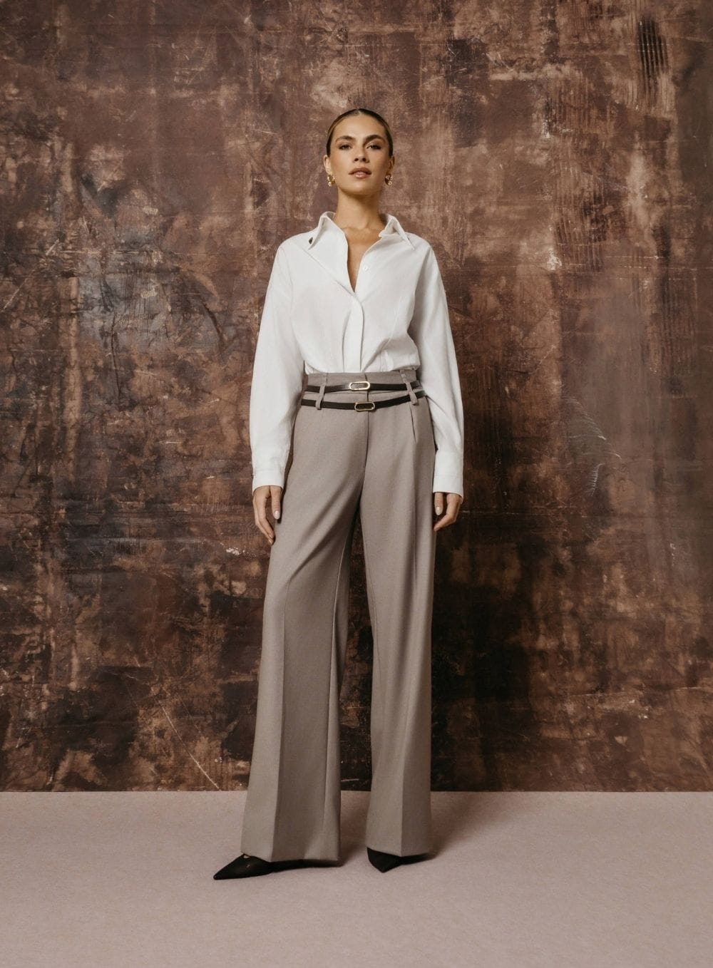 A Calça Nora é uma peça de alfaiataria feminina com modelagem reta e cós duplo que valoriza a silhueta com elegância, possui bolsos traseiros estrategicamente posicionados e acompanha cintos finos com ferragem exclusiva, reforçando o acabamento premium. Uma calça sofisticada e versátil para composições modernas e atemporais.