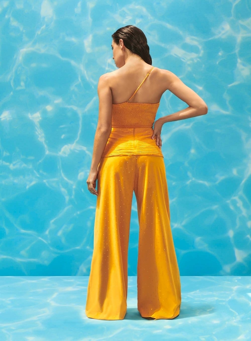 Top Drapeado C Lastex Costas Amarelo Ouro