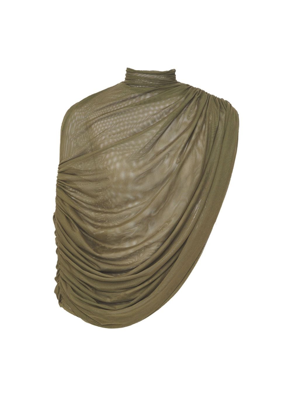Capa Kim Assimétrica em Tule Drapeado com Gola Alta – Deep Green