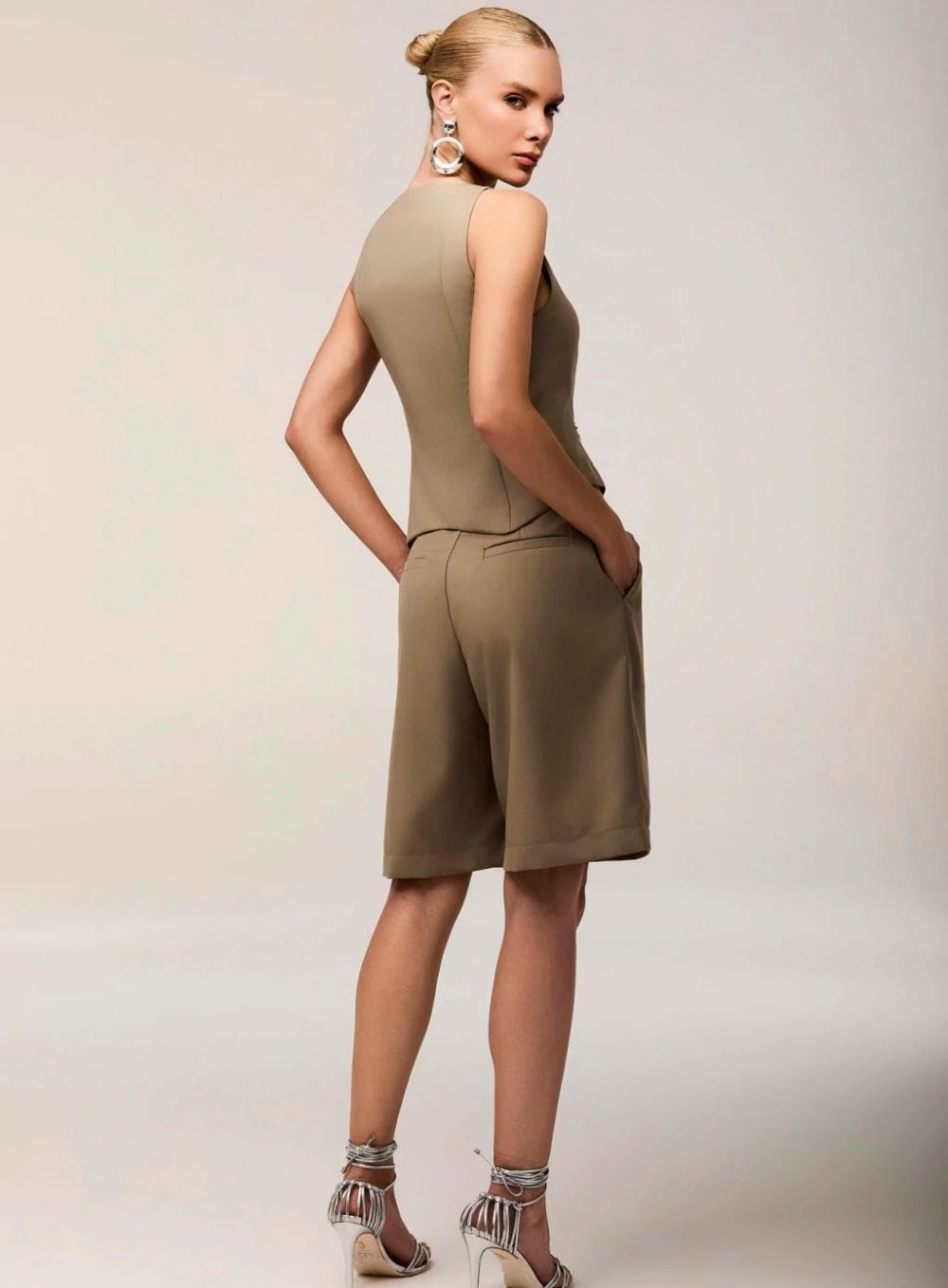 Para o Colete Luna, o foco deve ser a alfaiataria de luxo e a transição do masculino para o feminino com extrema sofisticação. É a peça perfeita para o clima de Cuiabá, entregando estrutura sem o peso de uma manga longa.