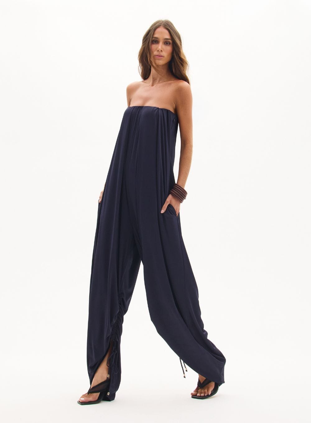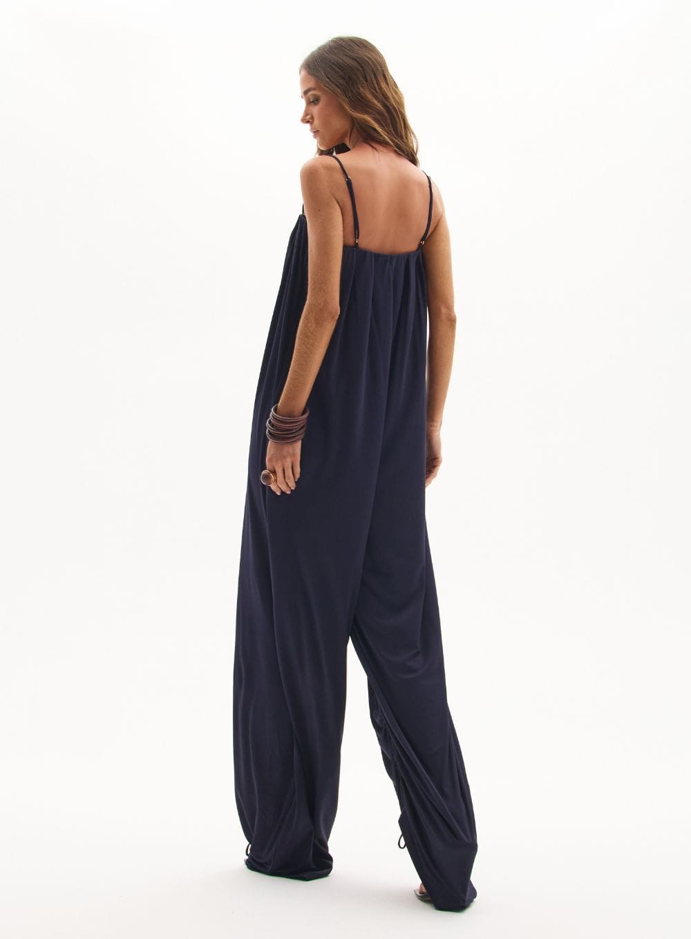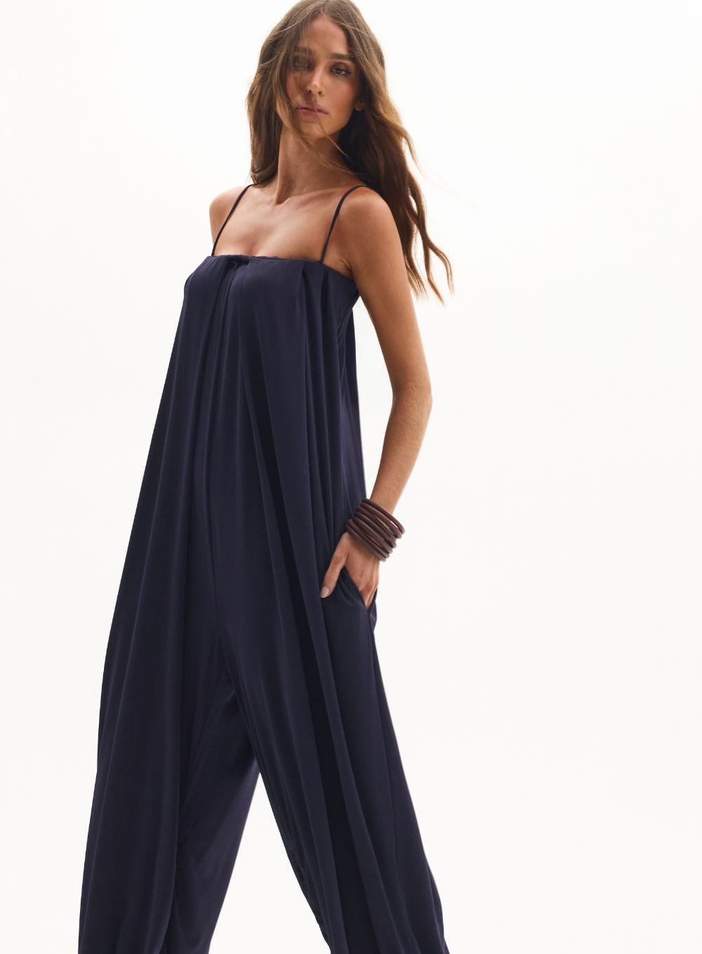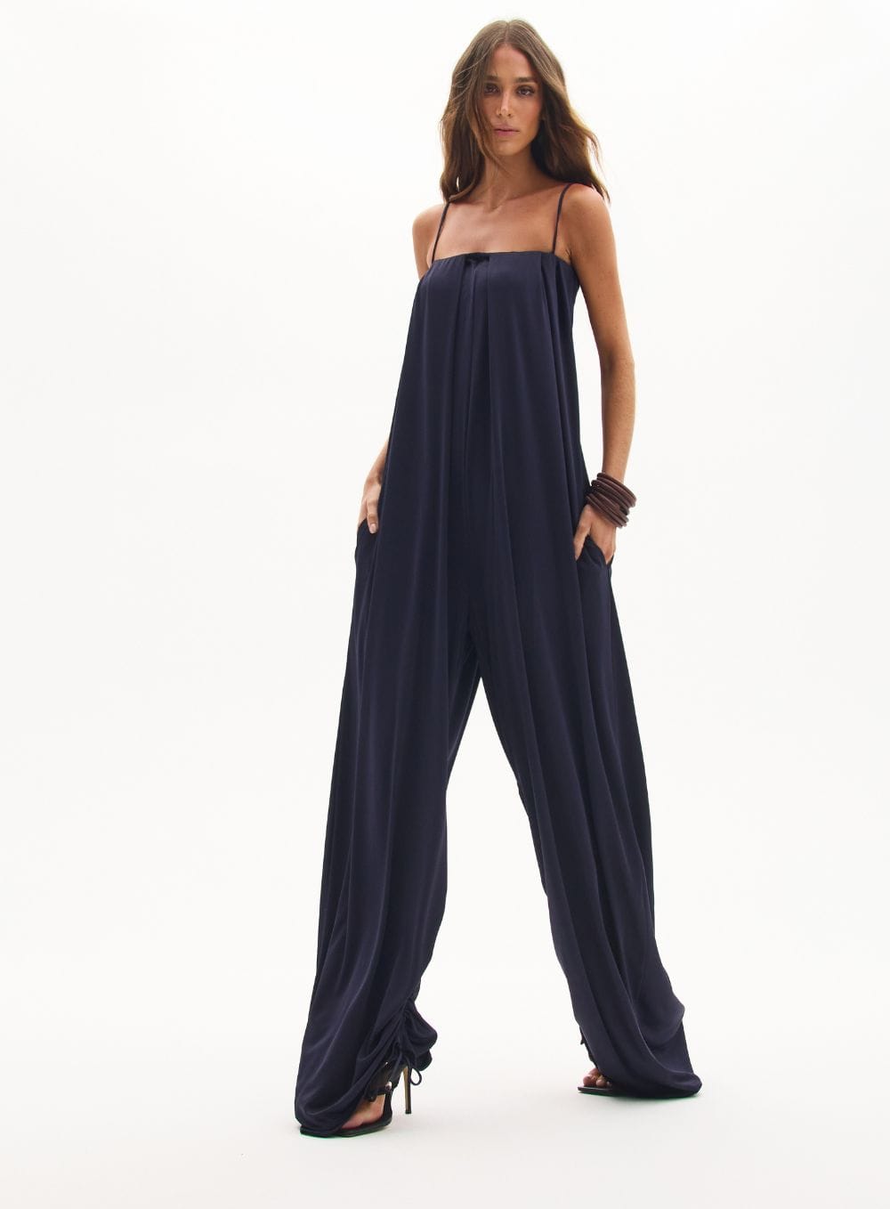 A tradução do \’glamour descomplicado\’. Uma peça única que une a praticidade do macacão à elegância fluida de um vestido, permitindo personalizar a silhueta com um toque fashionista.