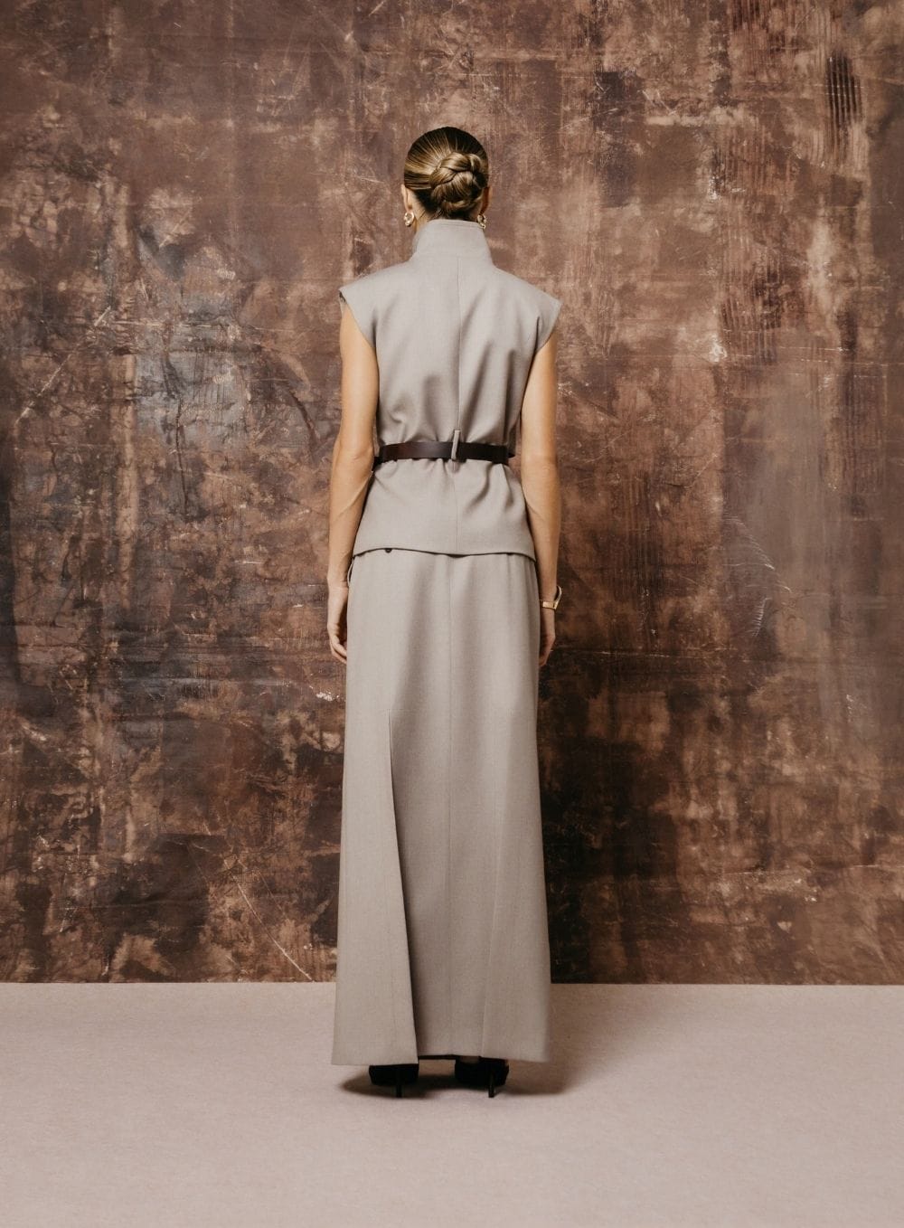 A Saia Longa Nora é uma saia de alfaiataria feminina com modelagem clássica NX e caimento estruturado. Possui bolsos traseiros e fendas estratégicas que proporcionam movimento e elegância. Uma peça sofisticada e atemporal para composições marcantes e modernas.
