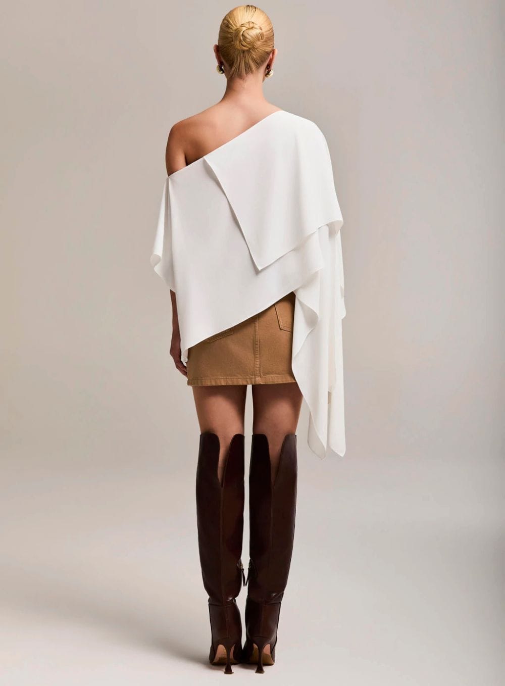 Peças autorais com fluidez e cortes assimétricos, refletindo elegância duradoura e inovação nos detalhes.