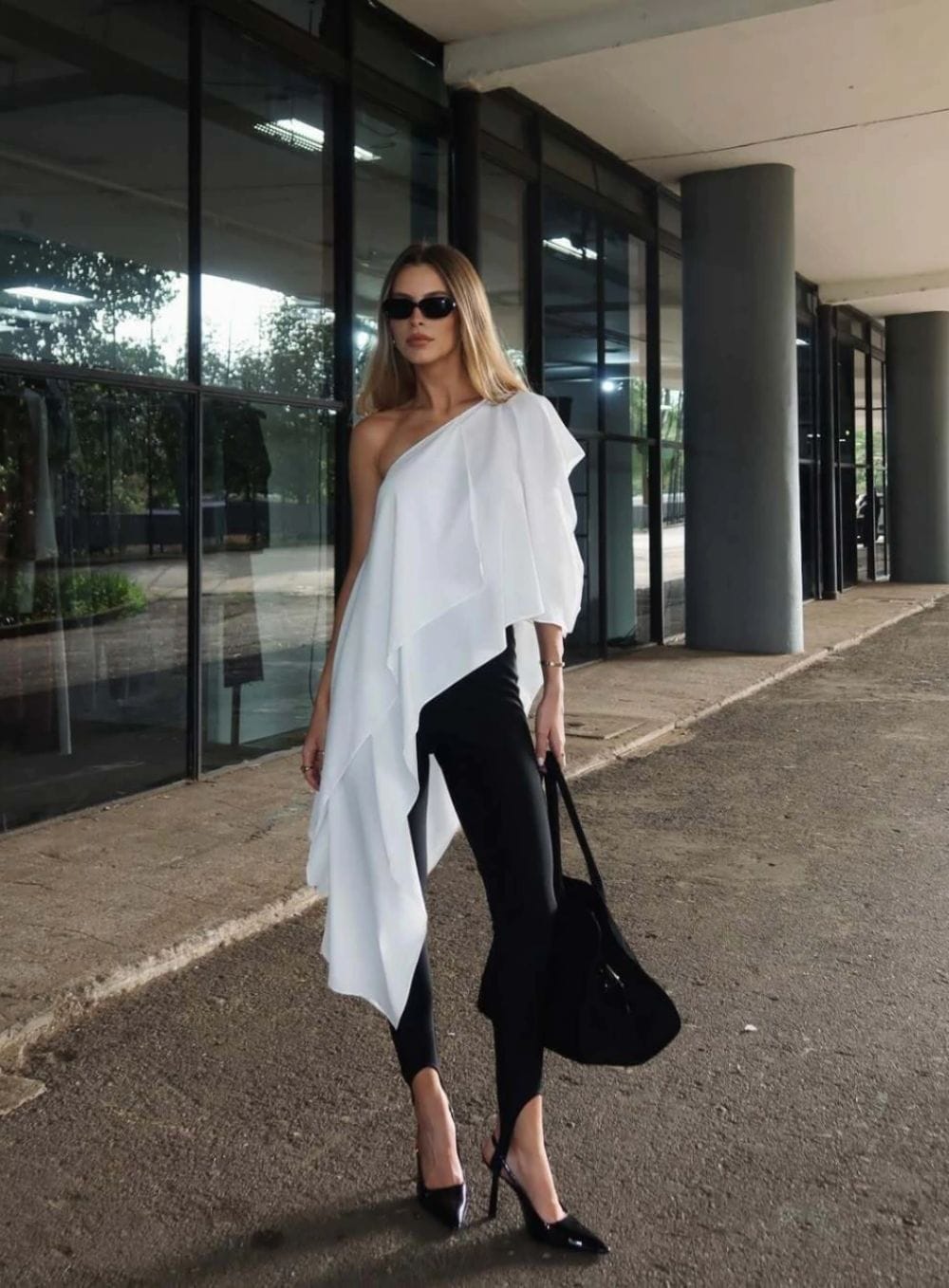 O Top Assimétrico é confeccionado em tecido plano fluido, possui duas camadas de crepe, modelado com técnica de mulagem, permite varias maneiras de ser usado.