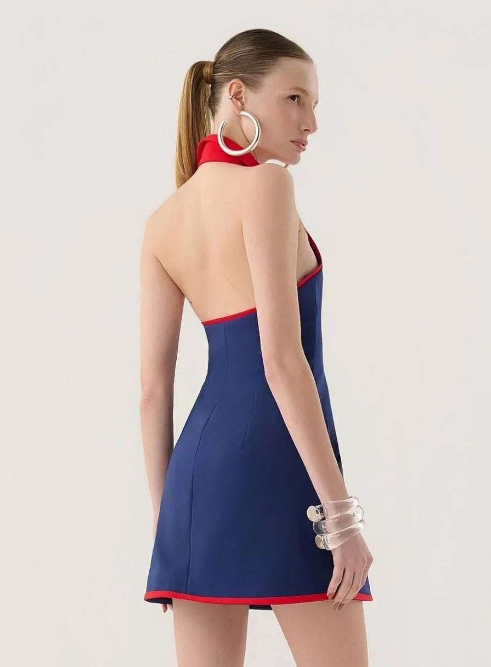 O vestido curto gola polo em marinho é sinônimo de sofisticação esportiva. O contraste do vivo traz modernidade aos recortes do busto, à patte com 8 botões e aos bolsos frontais embutidos. O detalhe na barra e cava reforça o acabamento impecável, enquanto a modelagem valoriza a silhueta de forma atual e feminina. Perfeito para composições casuais elegantes, funciona bem tanto com tênis minimalistas quanto com sandálias de salto bloco.