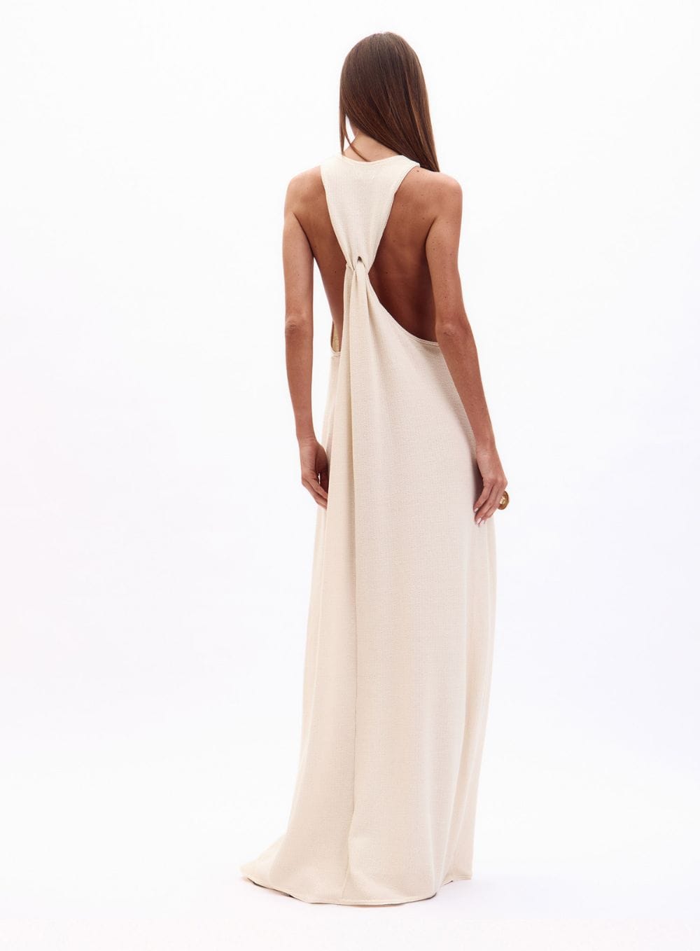 Vestido Midi Com Abertura Nas Costas Marrom