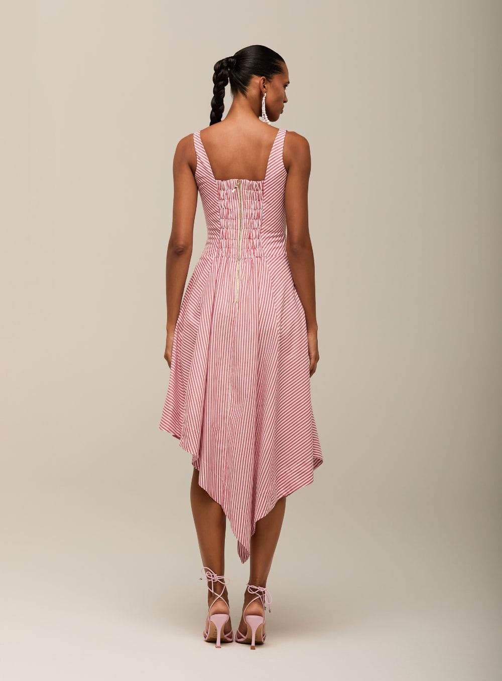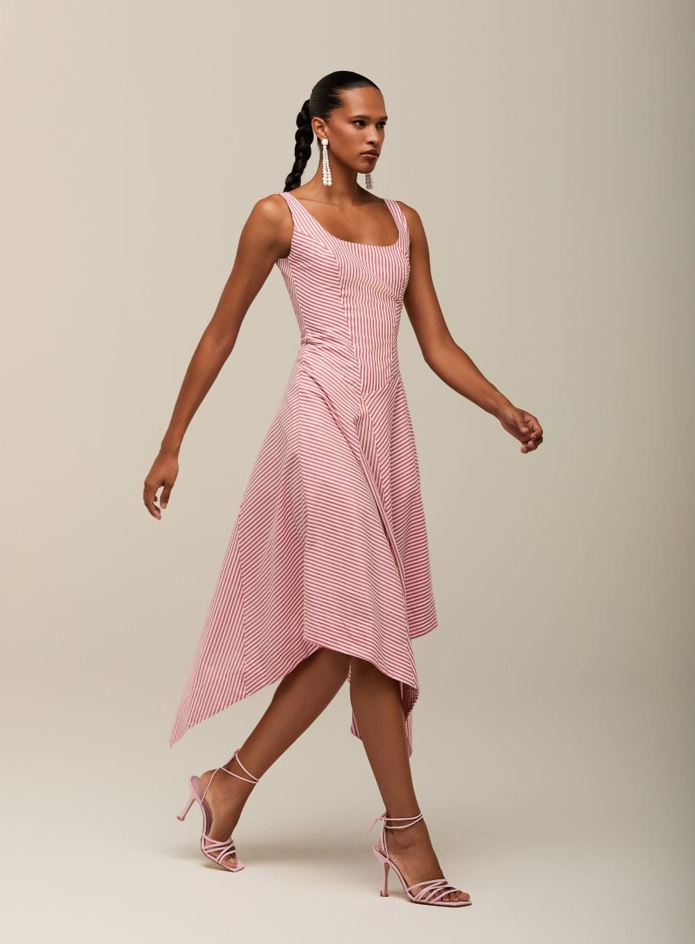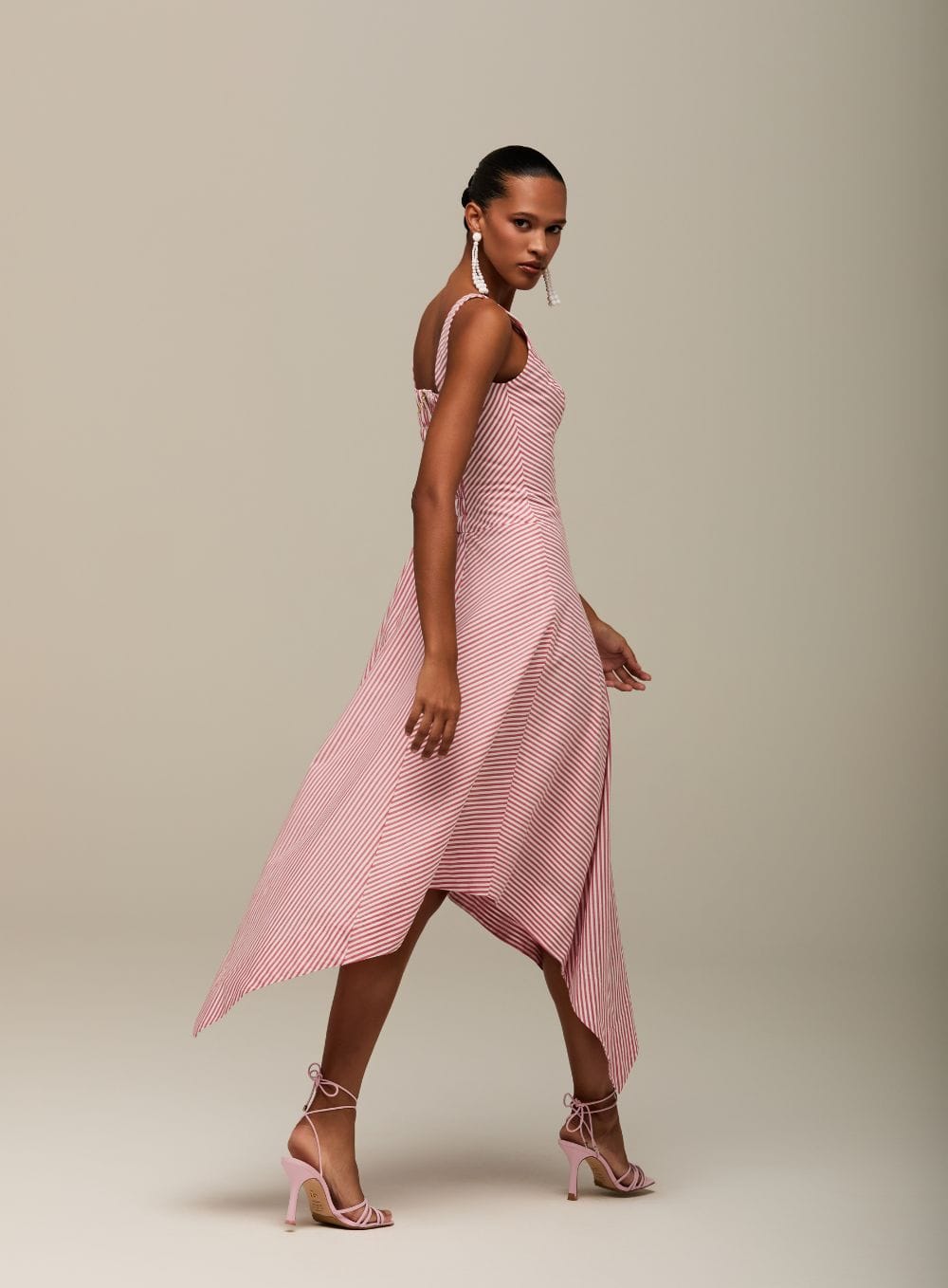 A modelagem midi com saia evasê torna o Vestido Luciana extremamente versátil.
