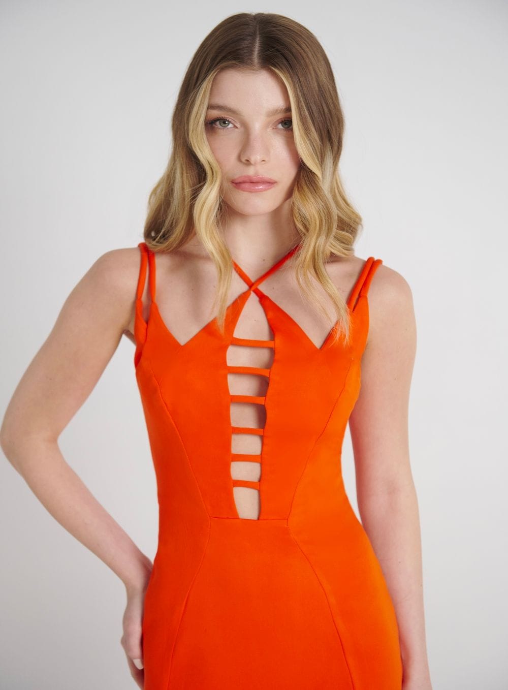 Elegância e conforto se traduzem quando adicionamos a dose certa de cut-out estratégicos! Como neste vestido SClub, por exemplo, onde o maior destaque se dá pelos recortes que valorizam a silhueta e trazem movimento para a composição. Num tecido leve, seu decote transpassado e a cintura bem marcada, valorizam o busto ainda que de forma sutil, enquanto seu comprimento midi abre espaço para combinações minimals que tragam mais classe e sofisticação à peça!