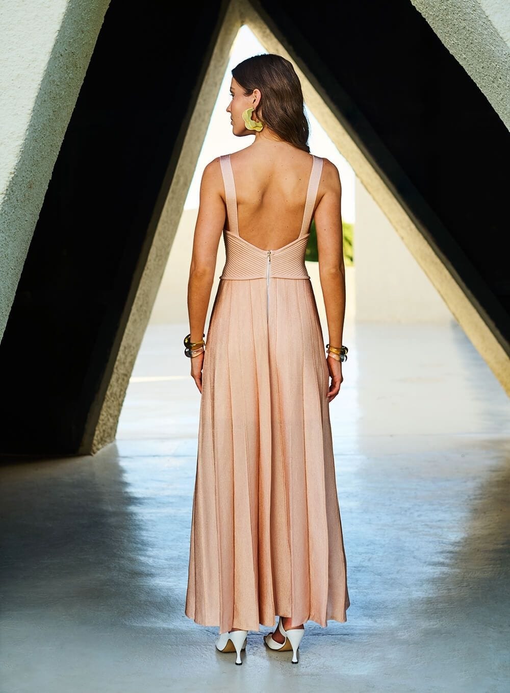 Combine com sandálias rasteiras e uma bolsa de crochê para um visual despojado e chique. Este vestido é perfeito tanto para um passeio ao ar livre quanto para um jantar descontraído entre amigos.
