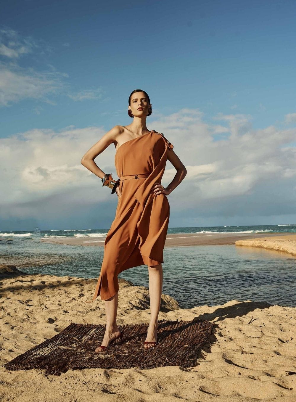 Este vestido de alça única com aviamento metálico traduz com perfeição o estilo elegante e descomplicado da mulher HAVEN. Em tom terroso sofisticado, ele une a fluidez do caimento à força do design assimétrico, criando uma silhueta marcante e leve ao mesmo tempo.