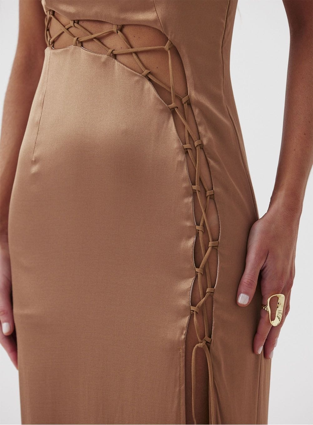 Vestido Midi Acetinado Recortes Tereza