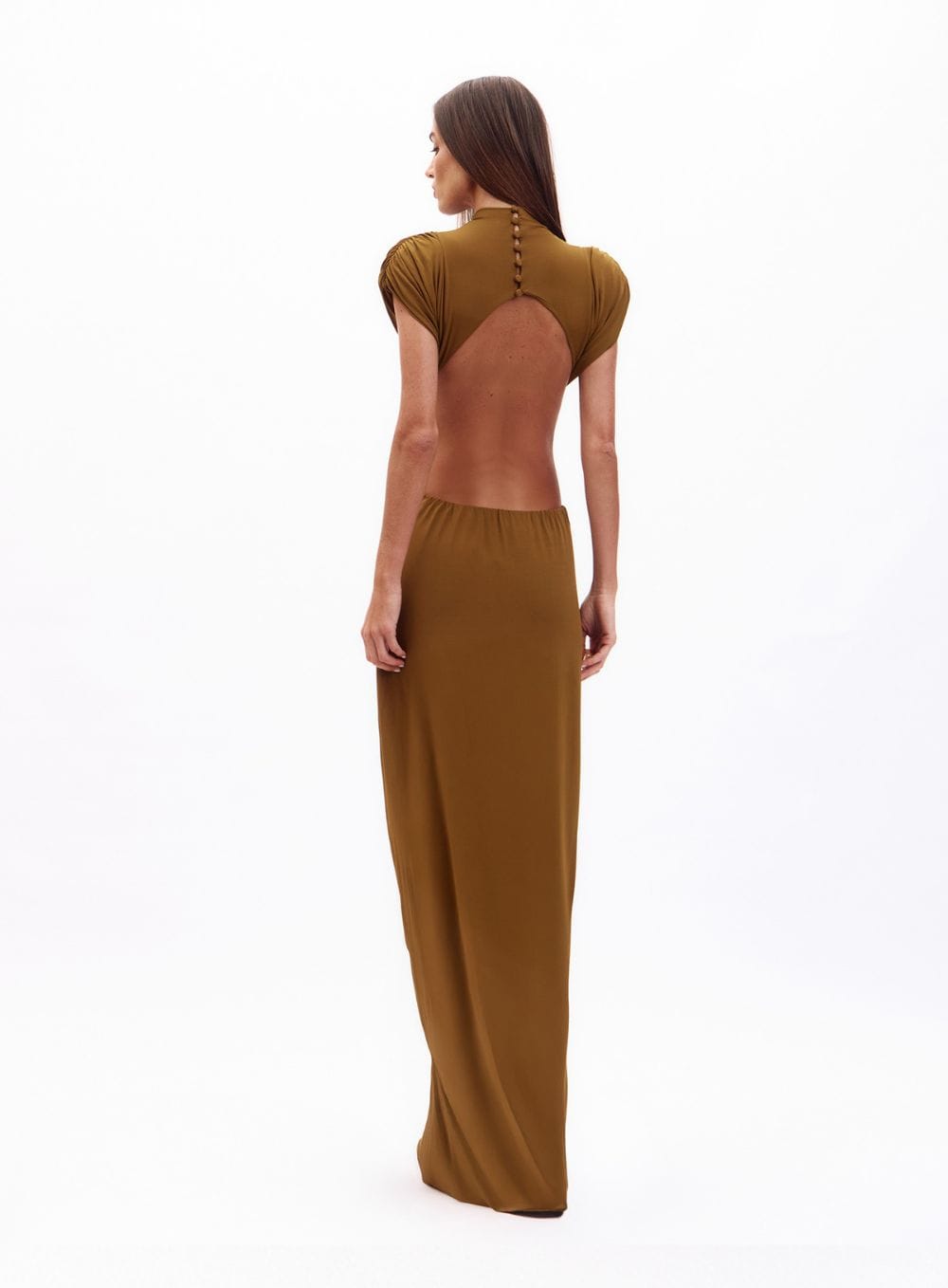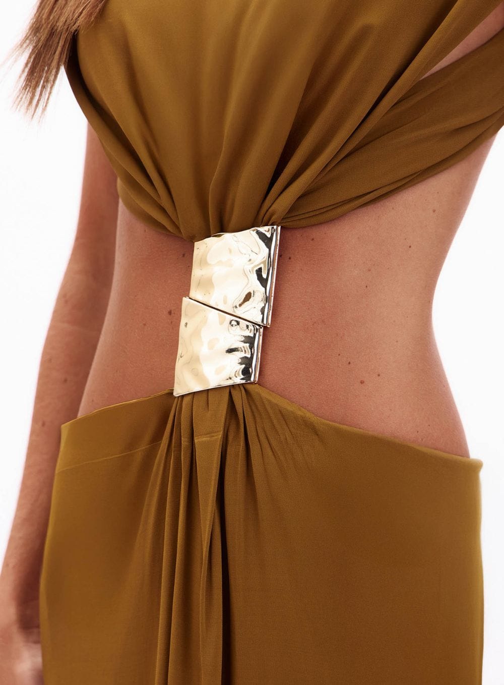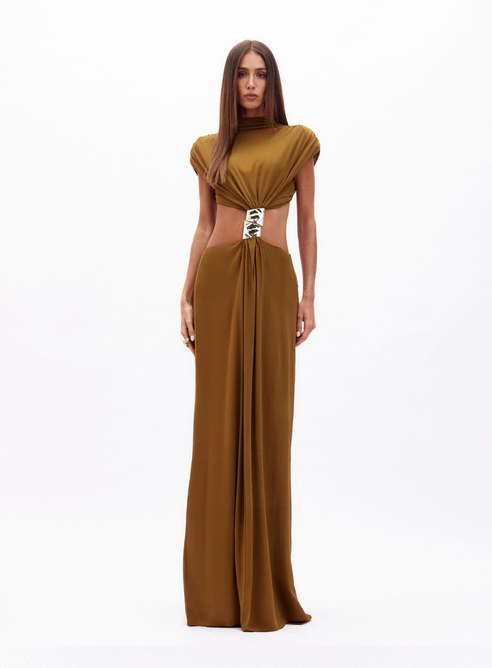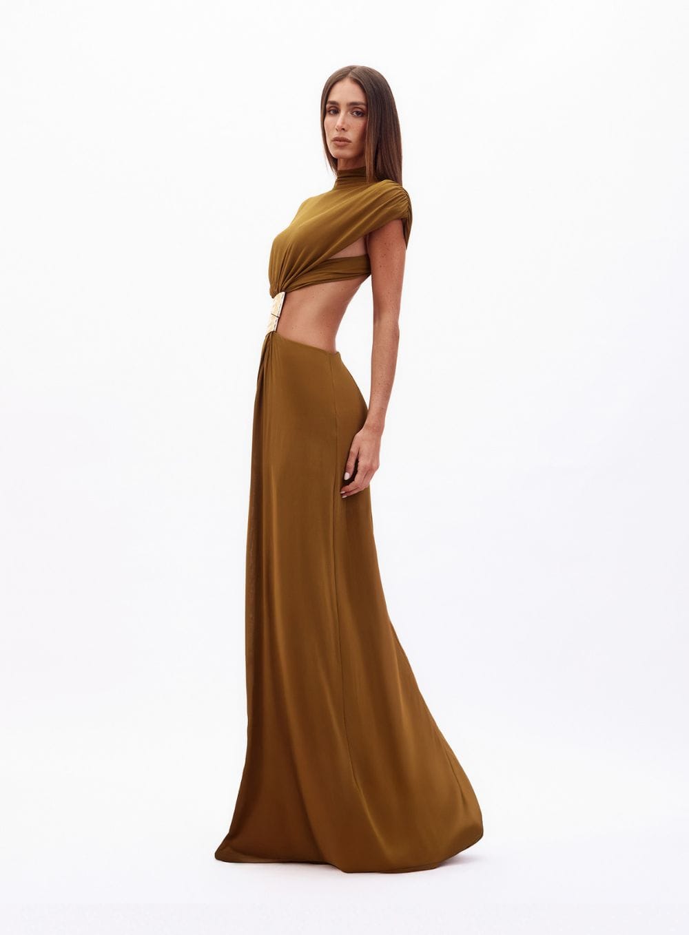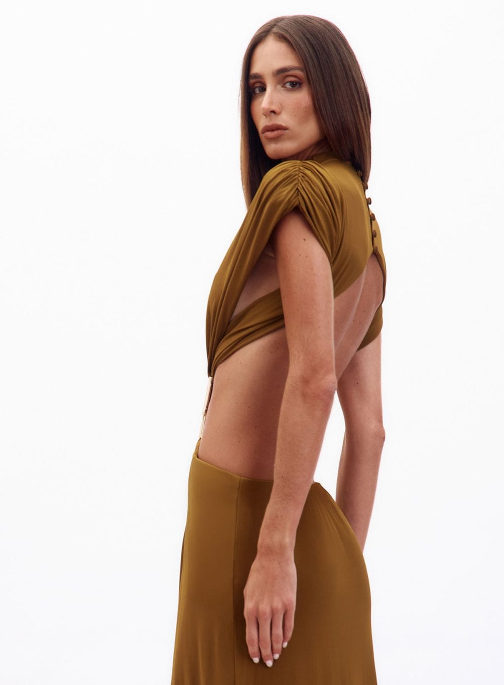 Inspiração & Materiais: resortwear com linho e malhas suaves, tule leve e viscose/modal; drapeados precisos, babados discretos e metais orgânicos em paleta natural (areias, verdes, terrosos e solares).