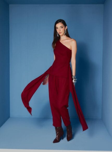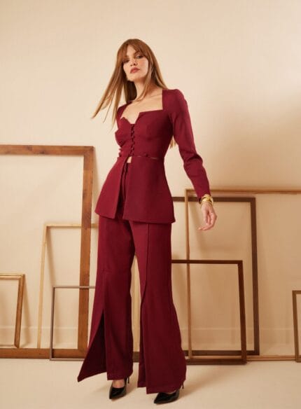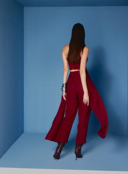 Conjunto Top E Calca Pantalona C Vivo Vinho